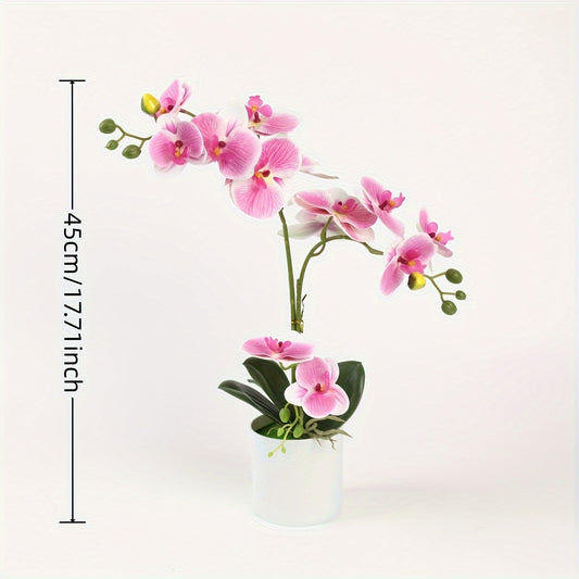 人工胡蝶蘭 1本 45cm 白いポット付き – エレガントなインテリア装飾 - パープルピンク