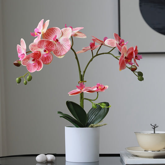 人工胡蝶蘭 1本 45cm 白いポット付き – エレガントなインテリア装飾 - ローズレッド