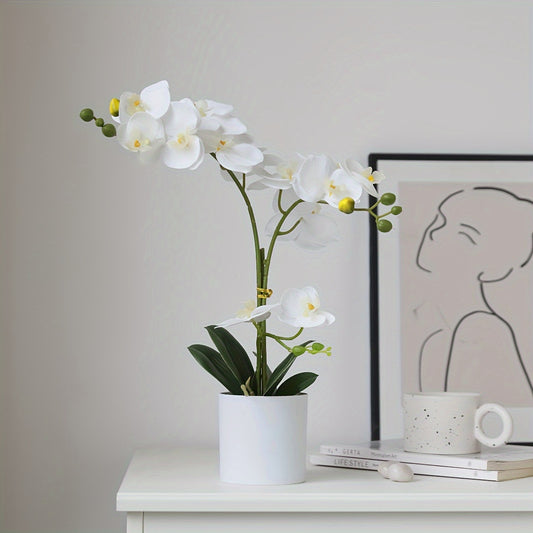 人工胡蝶蘭 1本 45cm 白いポット付き – エレガントなインテリア装飾 - ホワイト